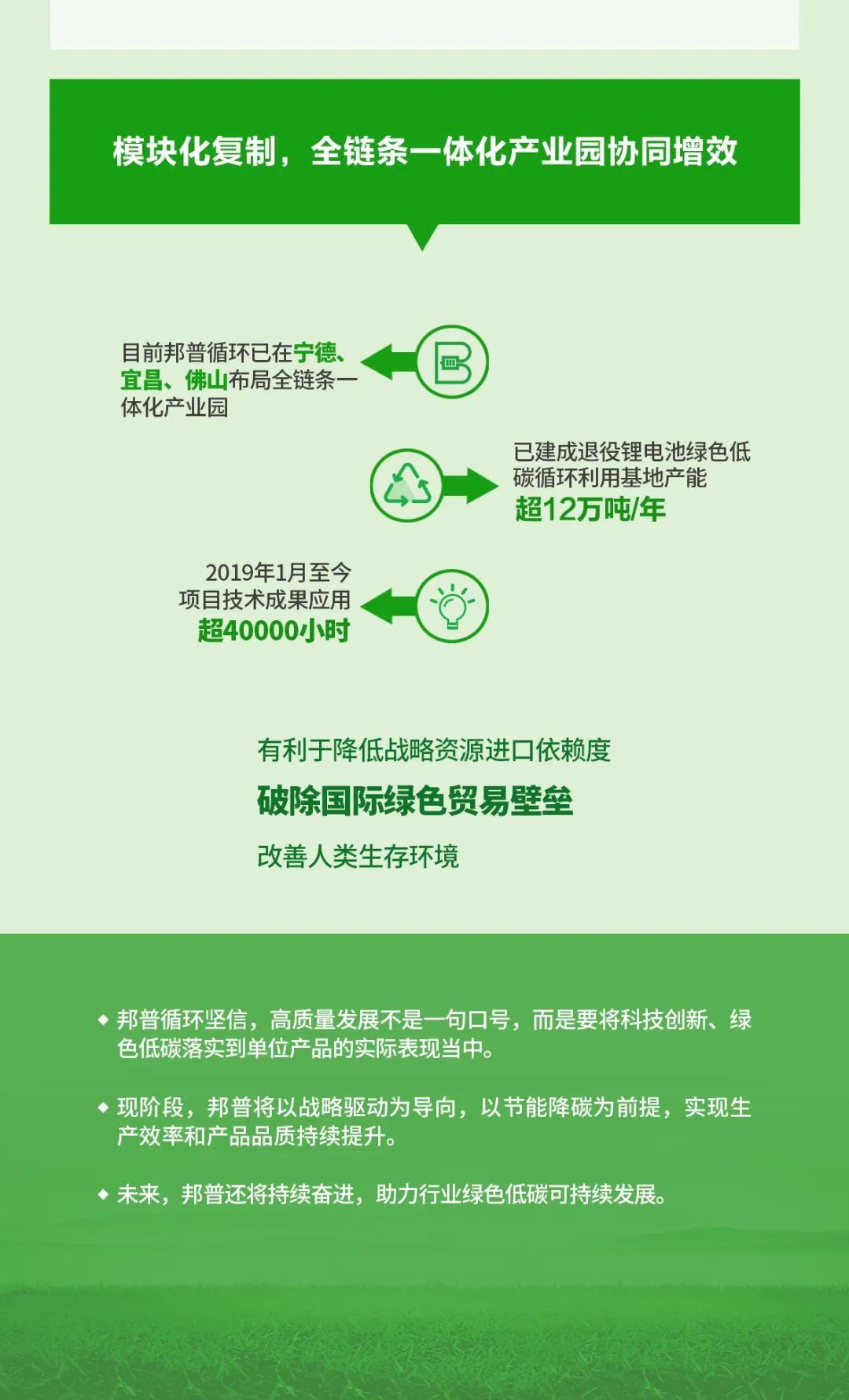 与宁德时代携手,立异定向循环手艺为电池全生命周期治理提供一站式闭环解决计划。拉通工业上下游,构建笼罩“电池生产-电池使用-梯次使用-循环再生”的循环工业模式。
